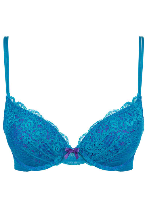 This feminine and pretty bra is made from intricate floral lace and has underwire support at the cut to enhance your cleavage. It has double hook and eye fastening at the back and adjustable straps for the perfect fit.