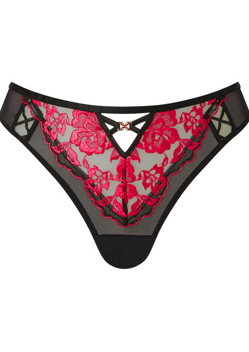 Stunningly iconic, our Endless Attraction Collection is crafted in a bold and lustrous floral Ciré embroidery with sheer mesh. The Brazilian Brief has rouleau stretch mesh sides with a lightly elasticated waistband, finished at the front with a charm and cut-out detail, whilst the barely-there brief gives you minimal back coverage. Wear together with the matching Endless Attraction Collection to complete the look.
