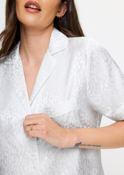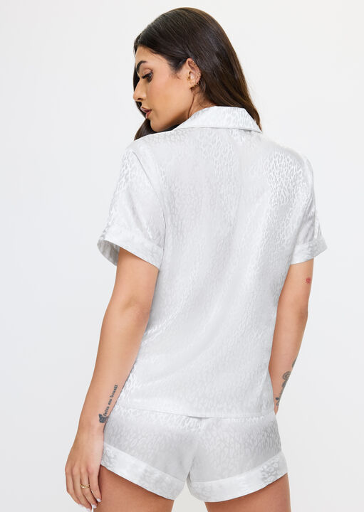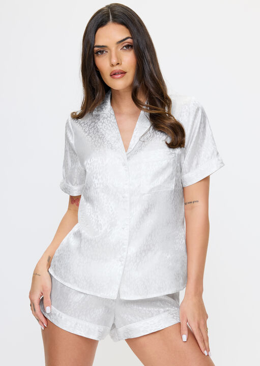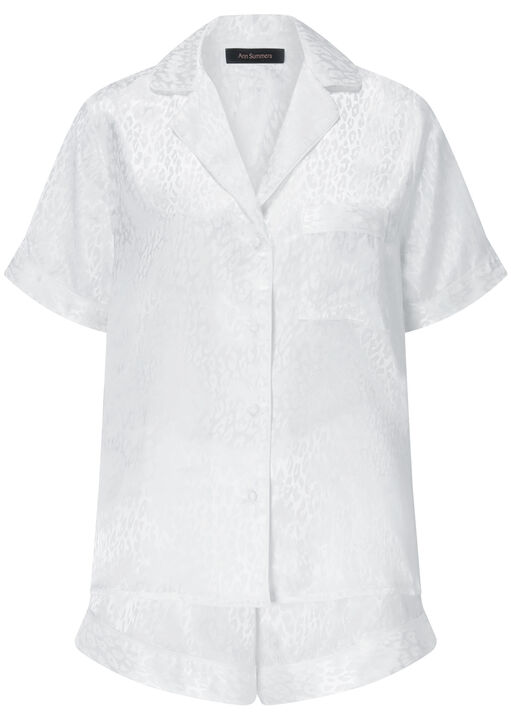 Slip into the Signature Satin PJ set and go to bed in style. Made from animal jacquard satin material with contrasting piping detail, this two-piece set features a short-sleeved shirt with a pocket on the chest and a button up front whilst the shorts have an elasticated waistband for a comfortable fit. Wear yours as a set for the most luxurious beauty sleep you can get.