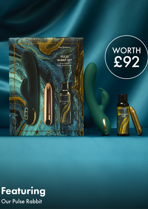 Tap into your desires with our Pulse Rabbit Set. Experience the Pulse Rabbit’s 13 exciting settings including 3 pulse motions and 10 vibration settings to pleasure your G-spot and clitoris for the most incredible dual stimulation. Use the Water-based Lube and roam your body with the Power Bullet simultaneously for heightened sensations on your most sensitive erogenous zones as you explore the 3 speeds and 7 vibration patterns. Keep your toys clean with our Ann Summers Buzz Fresh range.